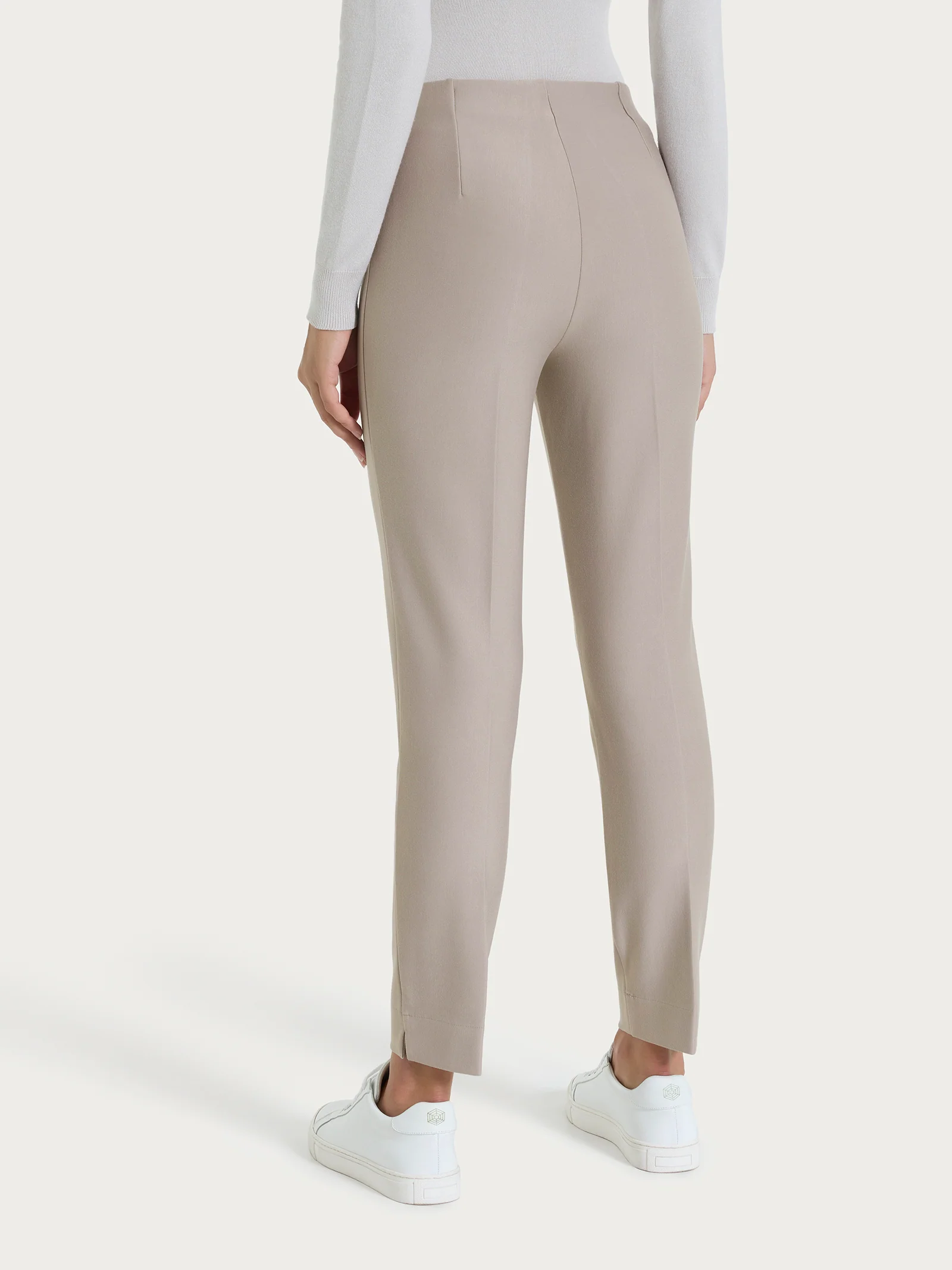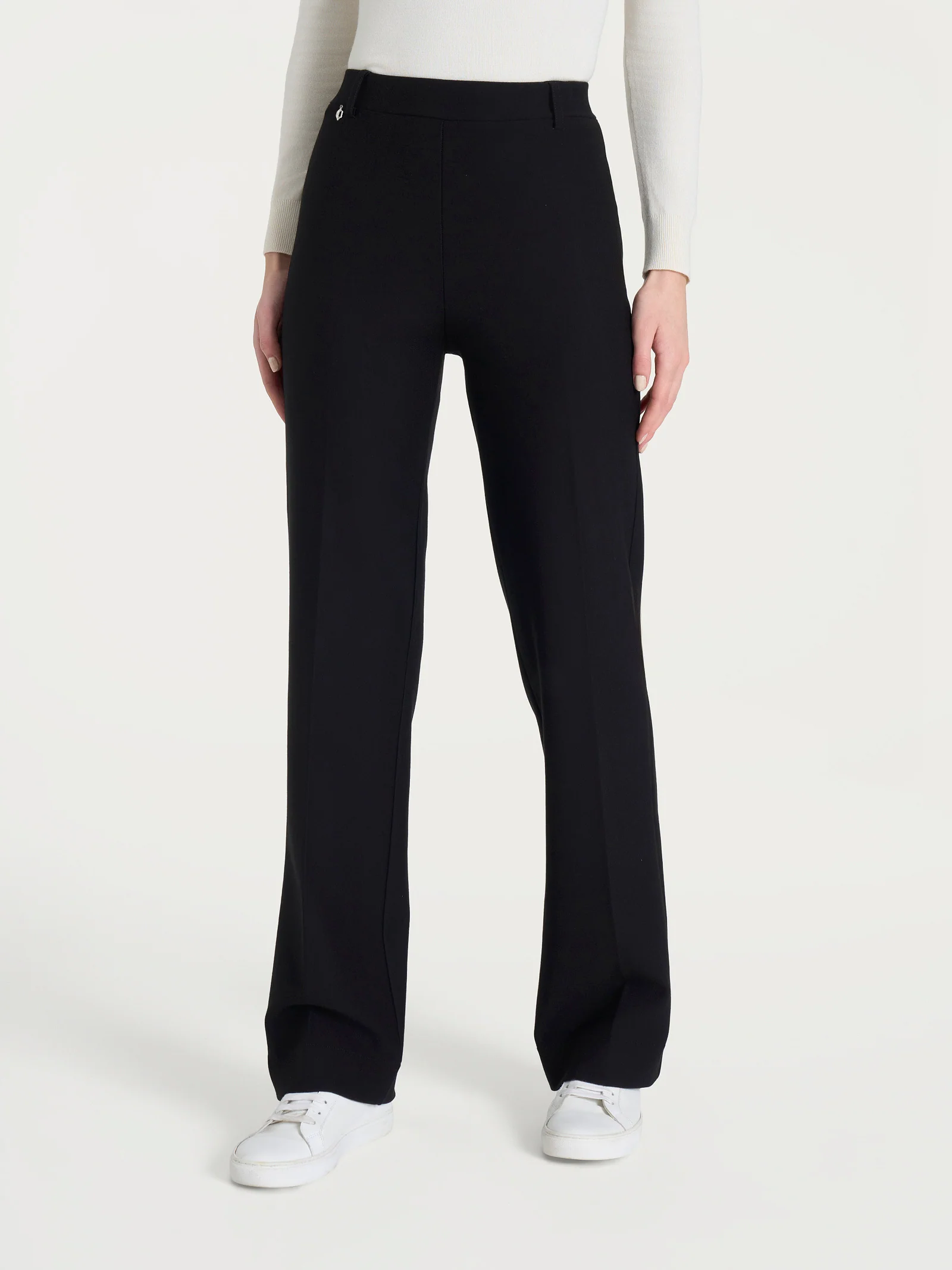 Questo modello è costruito con vita elasticizzata e senza tasche, comodo come indossare un leggings pur mantenendo l’eleganza di un pantalone. Larghezza fondo cm 15.