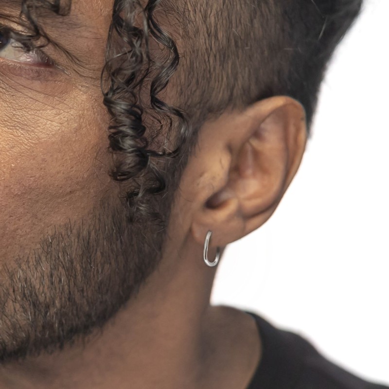 Orecchino mono cerchio in acciaio martellato con diametro 2,6 cm e spessore 0,19 cm. Logo Marlù laserato sulla parte posteriore della chiusura. Collezione: BEW03 Materiali: acciaio