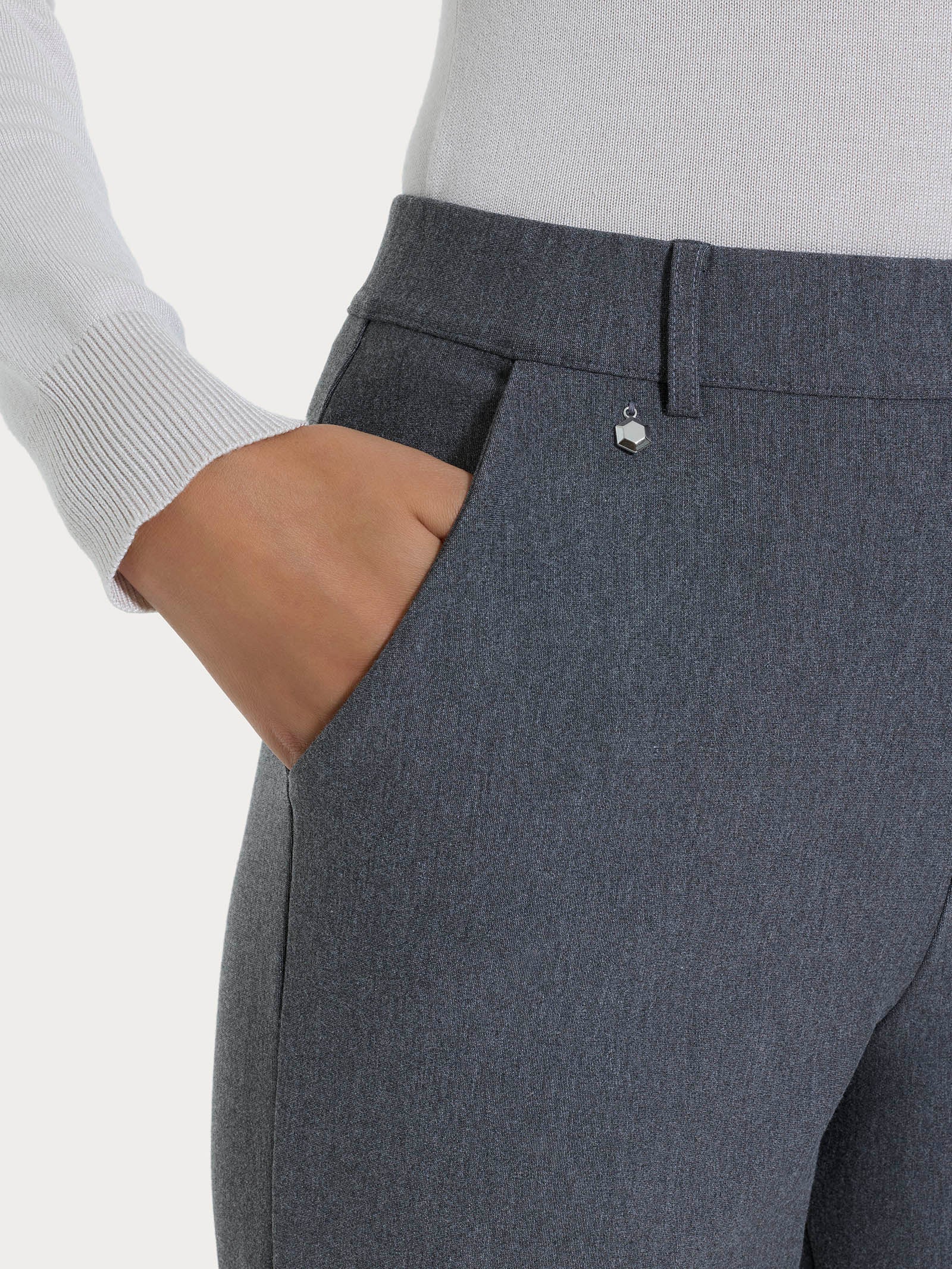 Realizzato nell’esclusivo tessuto Compact, un punto Milano incredibilmente compatto ed elasticizzato, tanto da garantire sempre una vestibilità perfetta.