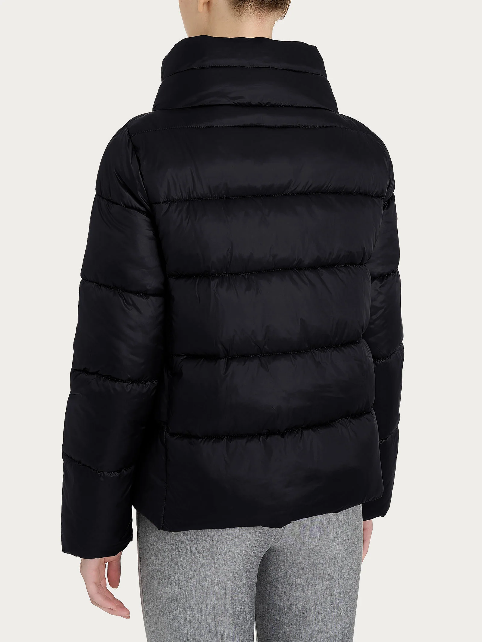 Piumino con collo alto da donna con chiusura frontale con zip e pratiche tasche laterali.